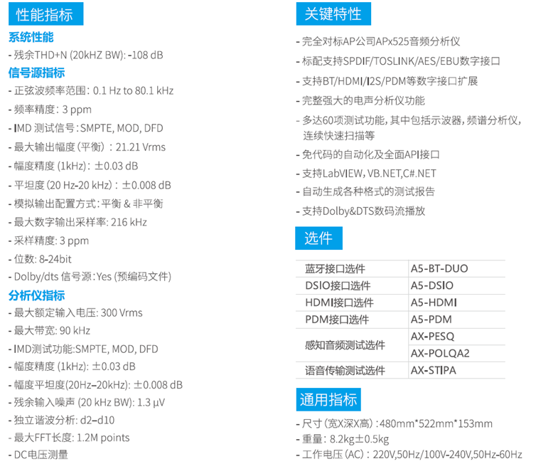 北京度緯科技有限公司銷售的A5音頻分析儀,是一款具備高性能、多接口類型、多測試功能于一體的專業(yè)音頻分析儀。支持多種測試插件拓展,支持各種數(shù)字音頻接口(BT/I2S/HDMI/PDM等),是消費(fèi)類音頻和汽車電子等音視頻產(chǎn)品研發(fā)階段的首選測試設(shè)備。