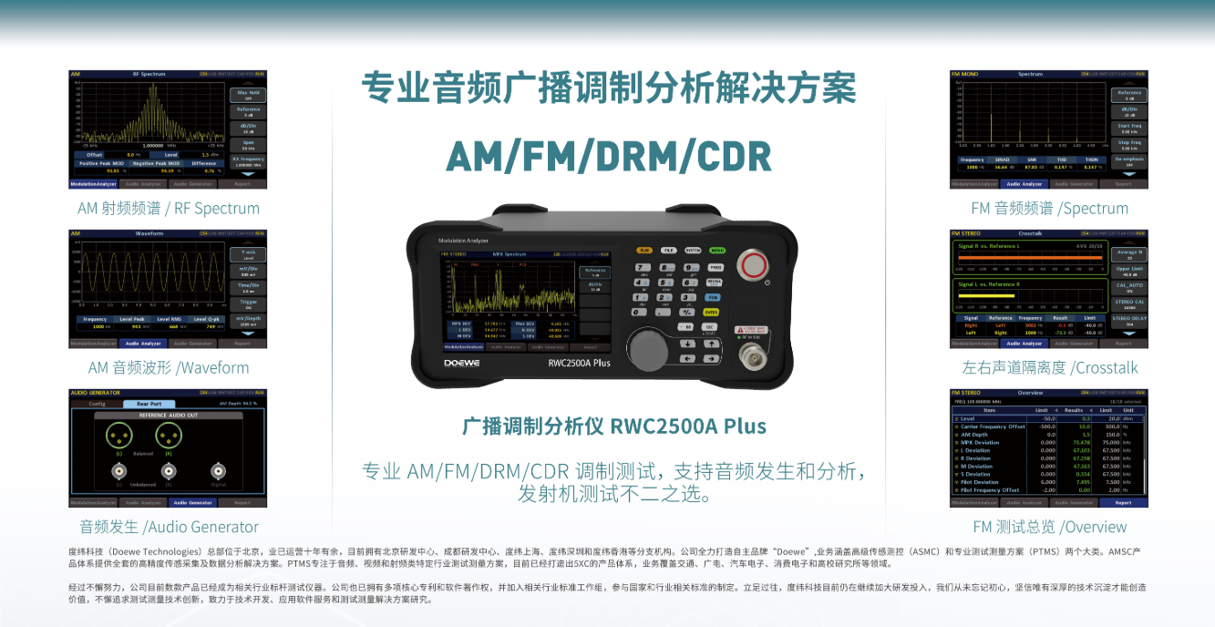 展會(huì)期間,度緯科技重點(diǎn)展示了廣播調(diào)制分析儀RWC2500A Plus、廣播測(cè)試系統(tǒng)RWC2010C、廣播測(cè)試儀RWC2100F及音頻分析儀A10等核心產(chǎn)品,憑借高精度、多場(chǎng)景適配能力及性價(jià)比優(yōu)勢(shì),吸引了眾多行業(yè)客戶駐足交流。通過(guò)現(xiàn)場(chǎng)技術(shù)演示與案例分享,充分展現(xiàn)了度緯公司在廣電測(cè)試領(lǐng)域的創(chuàng)新實(shí)力與解決方案能力。