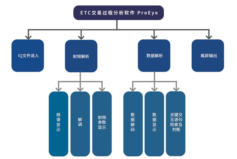 ETC交易過程分析軟件ProEye是一款分析ETC系統(tǒng)通信流程(協(xié)議一致性)的專業(yè)測試軟件。主要是對已錄制的包含ETC射頻交互過程的IQ文件進行分析。支持常用的IQ文件格式,支持解析射頻指標、應(yīng)用層及設(shè)備應(yīng)用層的關(guān)鍵交互語句和特征數(shù)據(jù)。