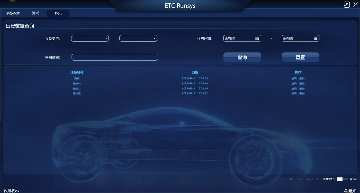 歷史界面中可以查看過(guò)往測(cè)試存儲(chǔ)的數(shù)據(jù)結(jié)果,當(dāng)歷史測(cè)試任務(wù)較多時(shí)也可通過(guò)被測(cè)物類型或關(guān)鍵詞搜索功能查找某個(gè)歷史任務(wù),在此功能界面中還可對(duì)過(guò)往的測(cè)試任務(wù)進(jìn)行刪除以及管理。