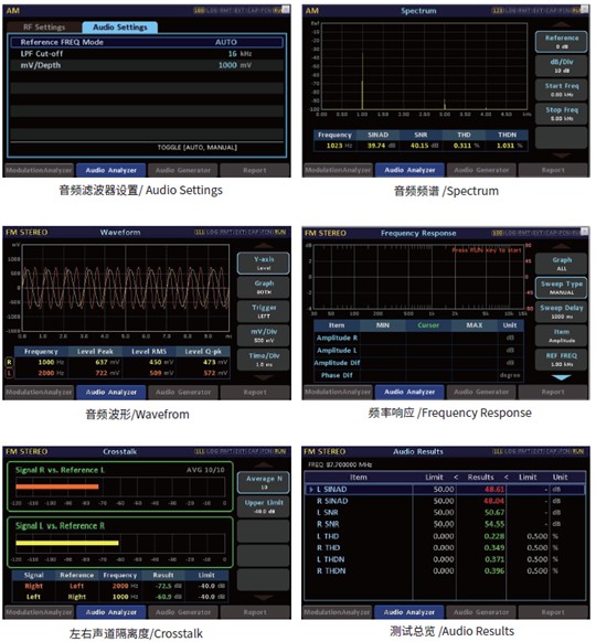 RWC2500A Plus完整支持AM/FM多制式解調,覆蓋500kHz至30MHz的AM頻段和76MHz至108MHz的FM頻段,單機即可應對多場景測試需求,射頻測量精度達±0.5dB。其核心突破在于一體化音頻測試能力:內置平衡/非平衡/數(shù)字多接口音頻發(fā)生器,參考音頻THD(總諧波失真)低至0.02%,在調整輸出電平時可實時觀測調制度變化,AM正負調幅不對稱度、SNR(信噪比)、頻響、隔離度等關鍵指標均可自動測試,未來將推出發(fā)射機指標檢測的一鍵自動化并生成對應報告,可大大提升測試效率。設備僅重5公斤、體積小巧,配合5英寸彩色觸摸屏,便攜性與操作體驗實現(xiàn)顯著提升。