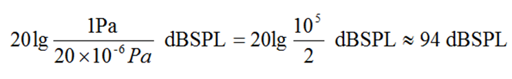 例如1Pa聲壓對(duì)應(yīng)的聲壓級(jí):