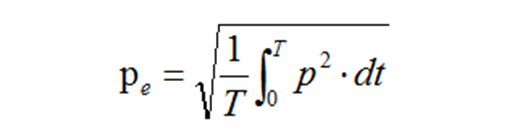 式中下角符號(hào)e代表有效值,T代表取平均的時(shí)間間隔,它可以是一個(gè)周期或比周期大得多的時(shí)間間隔。我們?nèi)粘V兴f的聲壓和一般電子儀表所測(cè)得的聲壓都是有效聲壓。
