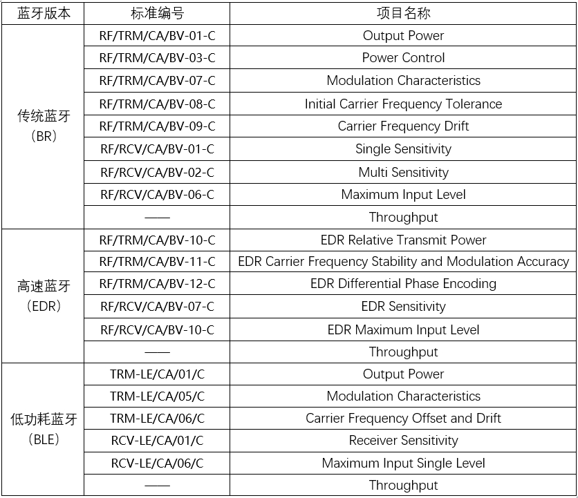 我司北京度緯科技有限公司推出的測(cè)試方案支持傳統(tǒng)藍(lán)牙(BR)、高速藍(lán)牙(EDR)和低功耗藍(lán)牙(BLE)技術(shù),并符合1.1、 1.2、 2.0、 2.1、 3.0、 4.0、 4.1、 4.2、 5.0、 5.1、5.2版(持續(xù)更新)藍(lán)牙協(xié)議核心規(guī)范。