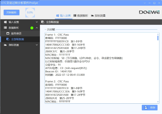 ● 通過分析識(shí)別錄制信號(hào)文件中的所有物理層數(shù)據(jù)幀并生成列表;