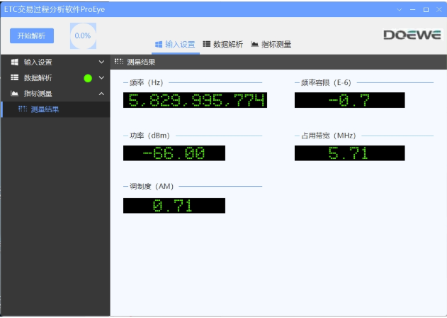 ● 支持解析相關(guān)射頻層指標(biāo),例如頻率、頻率容限、信號(hào)功率、占用帶寬以及調(diào)制度。