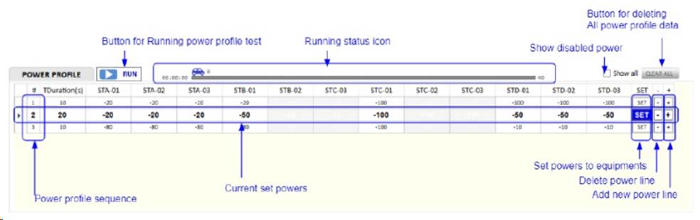 可以在功率配置器中導(dǎo)入功率配置文件,也可單獨(dú)設(shè)置每個(gè)發(fā)射機(jī)的功率水平,便于用戶(hù)模擬真實(shí)現(xiàn)場(chǎng)可能發(fā)生的各種發(fā)射機(jī)與無(wú)線(xiàn)電廣播信號(hào)環(huán)境。所有功率值都將根據(jù)所連接的設(shè)備自動(dòng)的檢查并限制大小,確保儀器能夠正常工作。