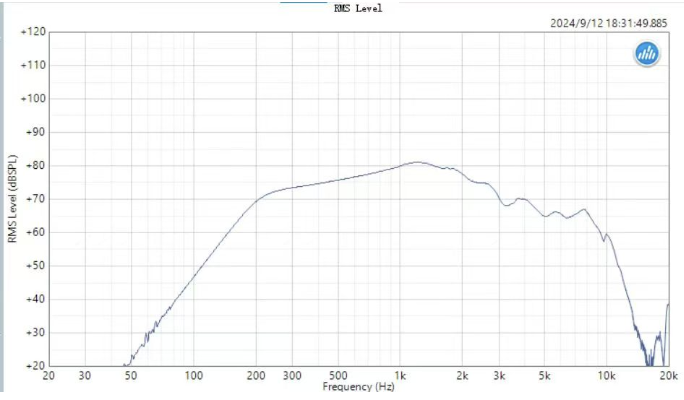 首先需要測得被測物的頻響曲線,以喊話器為例,鏈路連接方式如圖2所示,頻率響應(yīng)測試結(jié)果如圖3所示。