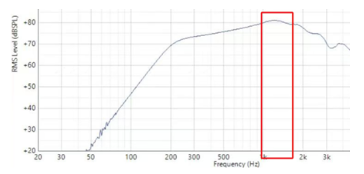 根據(jù)頻響曲線找到靈敏度最高位置處所對應(yīng)的頻率,以圖3的頻響曲線為例,靈敏度最高位置頻率在1.5kHz附近。
