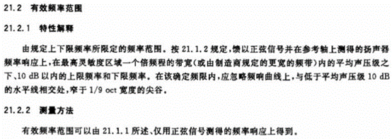 如圖1所示為12060.5中對有效頻率范圍指標(biāo)的相關(guān)描述,其他一些包含這項指標(biāo)的測試標(biāo)準(zhǔn)中關(guān)于這項指標(biāo)的描述可能有些出入,但測試方法其實大同小異。