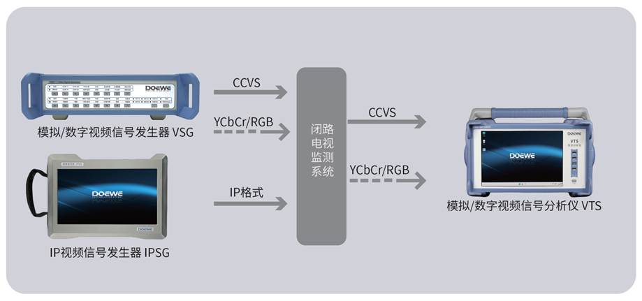 傳統(tǒng)模擬視頻信號,如CCVS(模擬標清復合視頻信號)和YPbPr(模擬高清分量視頻信號),相應模擬視頻傳輸系統(tǒng)的測試,一般是直接通過模擬視頻接口進行測試。隨著信號的數(shù)字化,基于HDMI接口的視頻傳輸系統(tǒng)也逐漸應用于模擬信號的傳輸之中(需要先進行數(shù)字化過程)。同時,為了維持較好的視頻質(zhì)量,有的系統(tǒng)也會考慮利用光發(fā)光收系統(tǒng)來將模擬信號 (甚至是數(shù)字化的HDMI信號) 直接光調(diào)制傳輸。所以,基于HDMI接口的視頻信號測試也是很有必要的。另外,隨著技術的發(fā)展,IP網(wǎng)絡漸漸成為主流。相應地,閉路電視監(jiān)控系統(tǒng)也不斷向IP化視頻傳輸轉換,有的攝像頭也可直接輸出IP視頻數(shù)據(jù)。