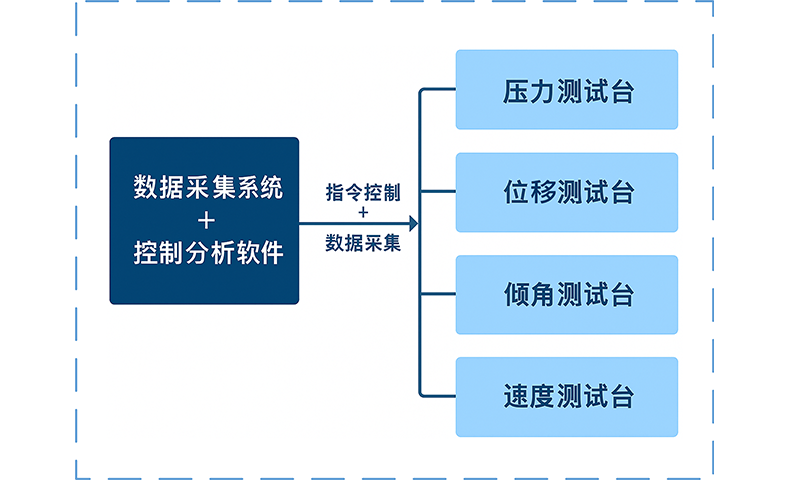 為確保各類傳感器(如壓力傳感器、位移傳感器、速度傳感器及傾角傳感器)在自動化測試中的高效、精準(zhǔn)性,系統(tǒng)整合了專業(yè)的測試臺。每個測試臺都針對特定的物理量進(jìn)行精確測量與控制,配合數(shù)據(jù)采集系統(tǒng)提供實時的數(shù)據(jù)傳輸與分析功能。
