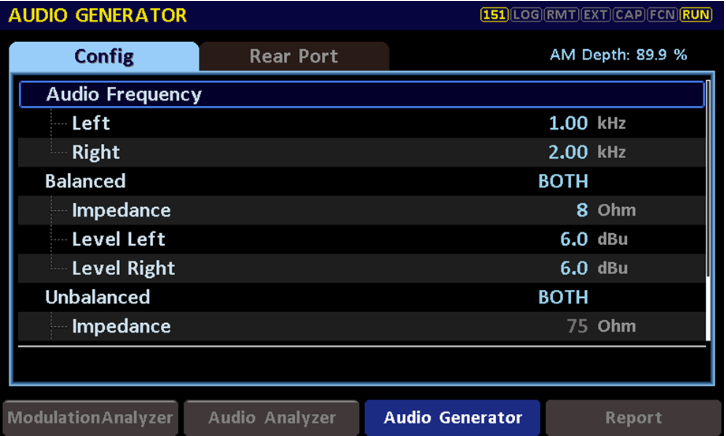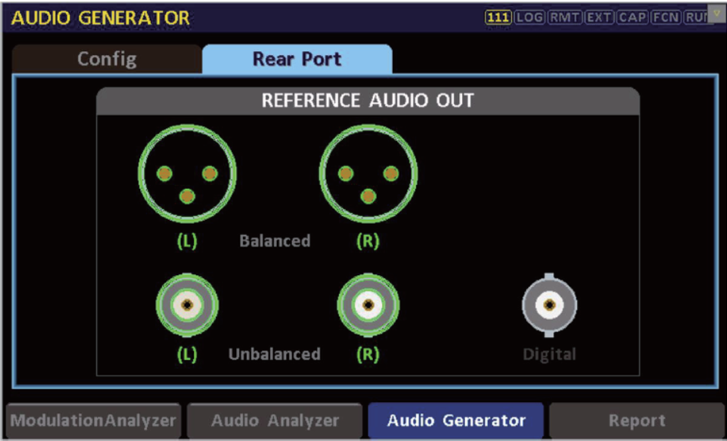 1、使用RWC2500A Plus的基帶音頻信號發(fā)生模塊時,首先可以在Audio Generator界面選擇Rear Port,在此界面可快速調(diào)整所需的音頻輸出接口(平衡/非平衡/數(shù)字),選擇好之后進入下一步。