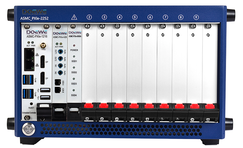 - 集成化存儲與多源傳感器接入:16 TB存儲卡直接插裝機(jī)框,長時高頻數(shù)據(jù)一次寫入完成;電壓、電流、溫度等信號統(tǒng)一接入對應(yīng) PXIe 專用采集卡,布線更簡潔、同步性更佳。