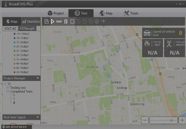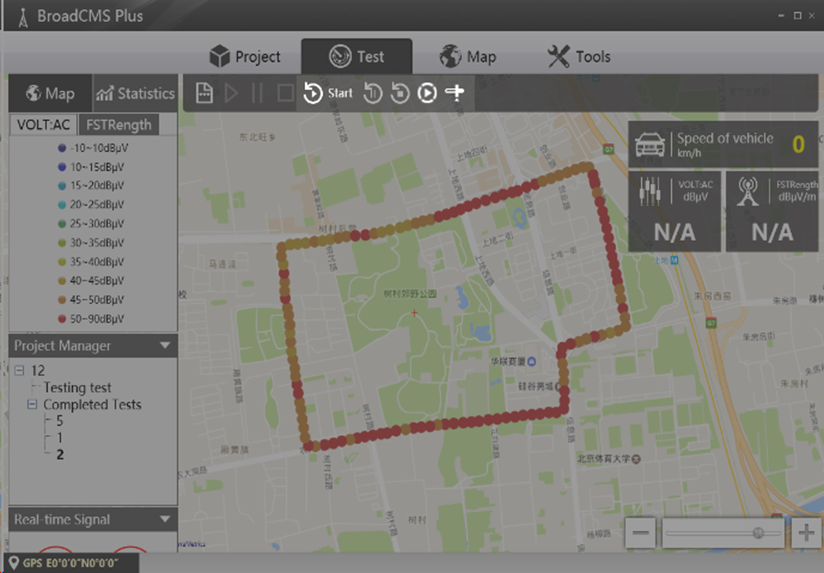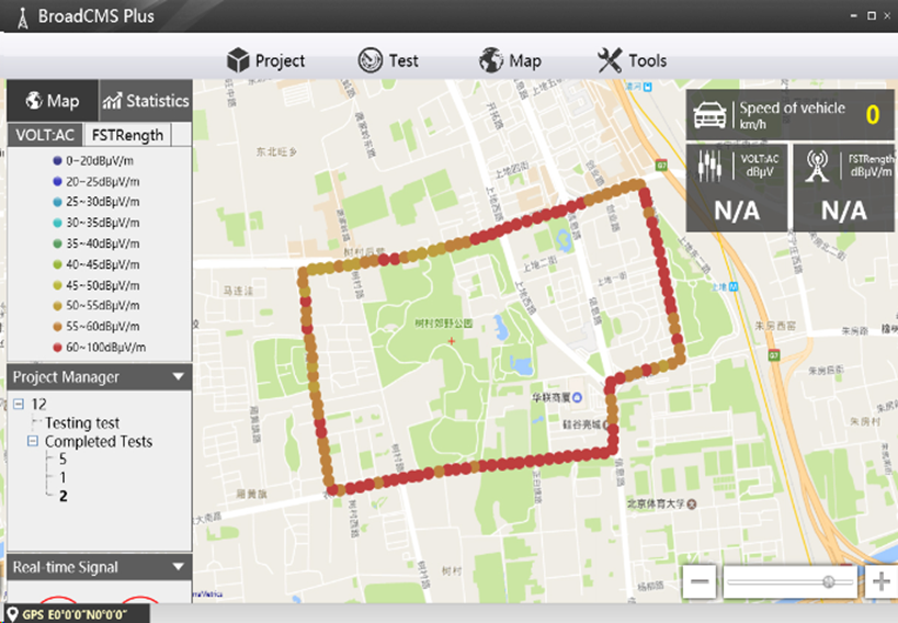 ● 能夠在地圖窗口實(shí)時顯示當(dāng)前測試位置和相關(guān)測試數(shù)據(jù);