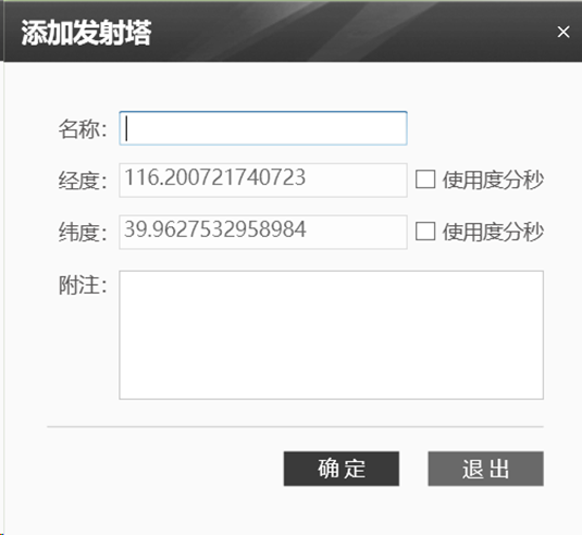 e)標(biāo)記發(fā)射塔:可在地圖上標(biāo)記(添加)發(fā)射塔位置信息,見下圖;: