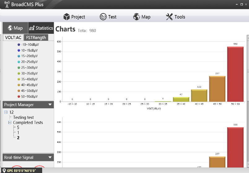 場強(qiáng)覆蓋測試系統(tǒng)可在車內(nèi)進(jìn)行外場測試, 可全面支持AM、FM、CDR、PAL-D/K和DTMB信號的綜合場強(qiáng)覆蓋路測,系統(tǒng)配置路測平臺軟件、GPS接收系統(tǒng)和地圖解決方案,可實(shí)現(xiàn)繪制點(diǎn)軌跡和線軌跡,并做二維圖覆蓋效果評估。BroadCMS可與RSA2500A(廣播調(diào)制分析儀)、MP7600(射頻記錄回放器)配合專業(yè)接收天線、精密傳輸線纜使用。