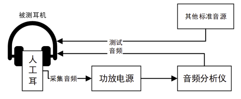 測(cè)試耳機(jī)時(shí)需要使用人工耳、音頻分析儀以及功放電源等設(shè)備,測(cè)試框圖大致如下。
